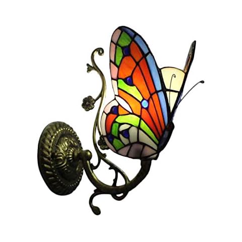 Amazon Com Butterfly Wall Sconce Lamp Tiffany Style Stained Glass Mirror Front Light Fixture Handmade Vintage Bedroom Beside Hallway Wall Light 2 Tools Home Improvement