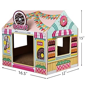 Amazon Com Sekam Cardboard Cat House With Scratcher Catnip 16 5 X12 X15 Kitty Donut Shop For Indoor Outdoor Cats Cat Play House Home Decor Cat Scratch Toy For Cat Birthday Hideout For Bunny Small Animals Pet Supplies